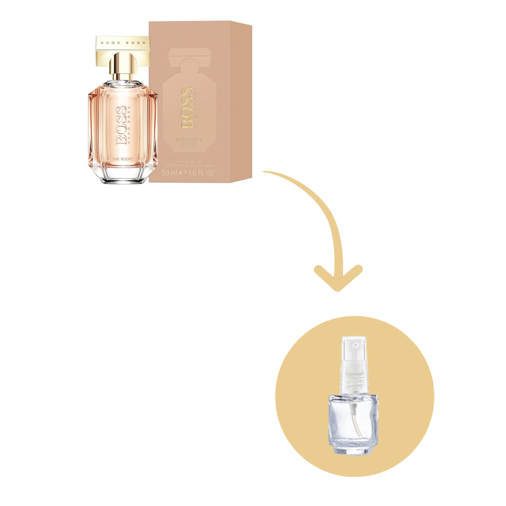 Boss The Scent for Her Hugo Boss Eau de Parfum é composto de 3 acordes que simbolizam atração, presente na combinação requintada de pêssego e frésia, sedução, trazida pelo tentador osmanthus, e vício, que vem da irresistível base de cacau torrado.